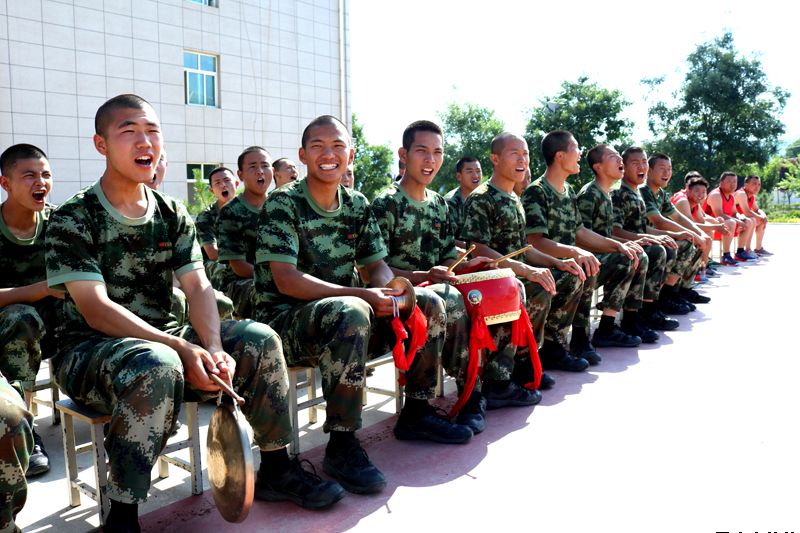 武警平涼市森林支隊官兵現(xiàn)場擊鼓吶喊