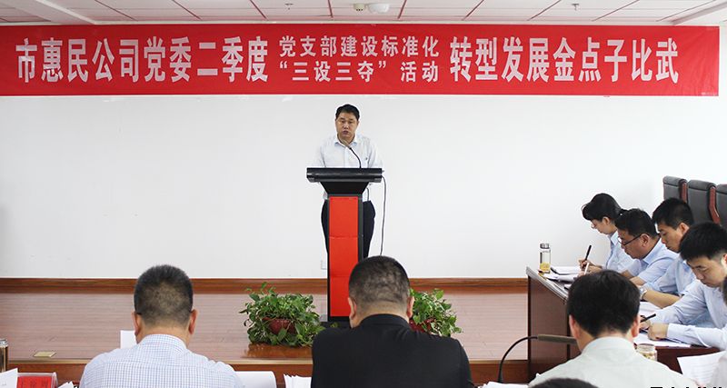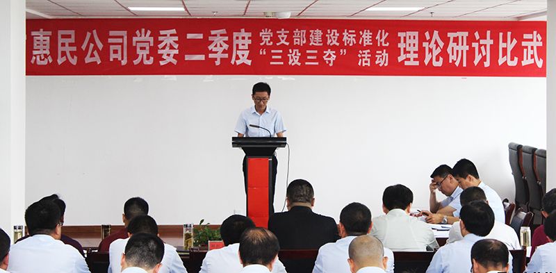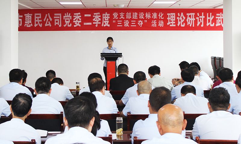 7月16日,市惠民公司黨委組織開展第二季度黨支部建設標準化“三設三奪”活動。公司黨委書記、董事長唐常寧,黨委委員、總經(jīng)理胡紅訓出席活動,副總經(jīng)理魏顯文主持活動。副總經(jīng)理王徐周、鄭忠軍、馬新平、柳振源,總工程師高健,總經(jīng)濟師王國太,中層干部及全體黨員共計60余人參加活動。
