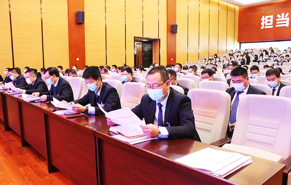 2月5日,平?jīng)龀峭叮ɑ菝窆荆┮粚萌温毠ご恚〞T)大會暨2020年度工作總結(jié)大會在惠民大廈5樓會議室隆重召開。平?jīng)龀峭叮ɑ菝窆荆h委書記、董事長唐常寧,黨委委員、總經(jīng)理胡紅訓,副總經(jīng)理魏顯文、王徐周、鄭忠軍、馬新平,總工程師高健,總經(jīng)濟師王國太,副總經(jīng)理王彥彥出席會議,中層干部及全體員工共計180余人參加會議。