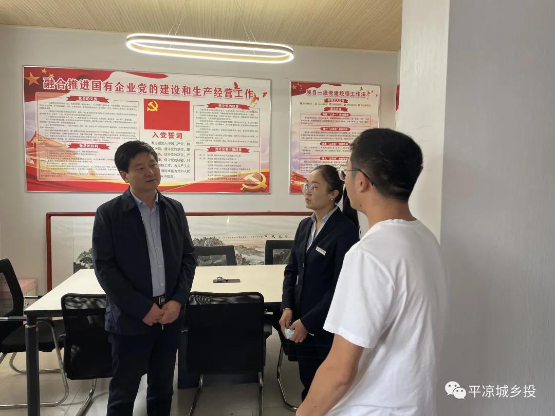 9月16日上午,平?jīng)龀青l(xiāng)投公司黨委委員、副總經(jīng)理魏顯文帶隊(duì),督查調(diào)研停車(chē)場(chǎng)公司黨支部項(xiàng)目一線黨建陣地布設(shè)情況,黨委辦(辦公室)負(fù)責(zé)人一同調(diào)研。