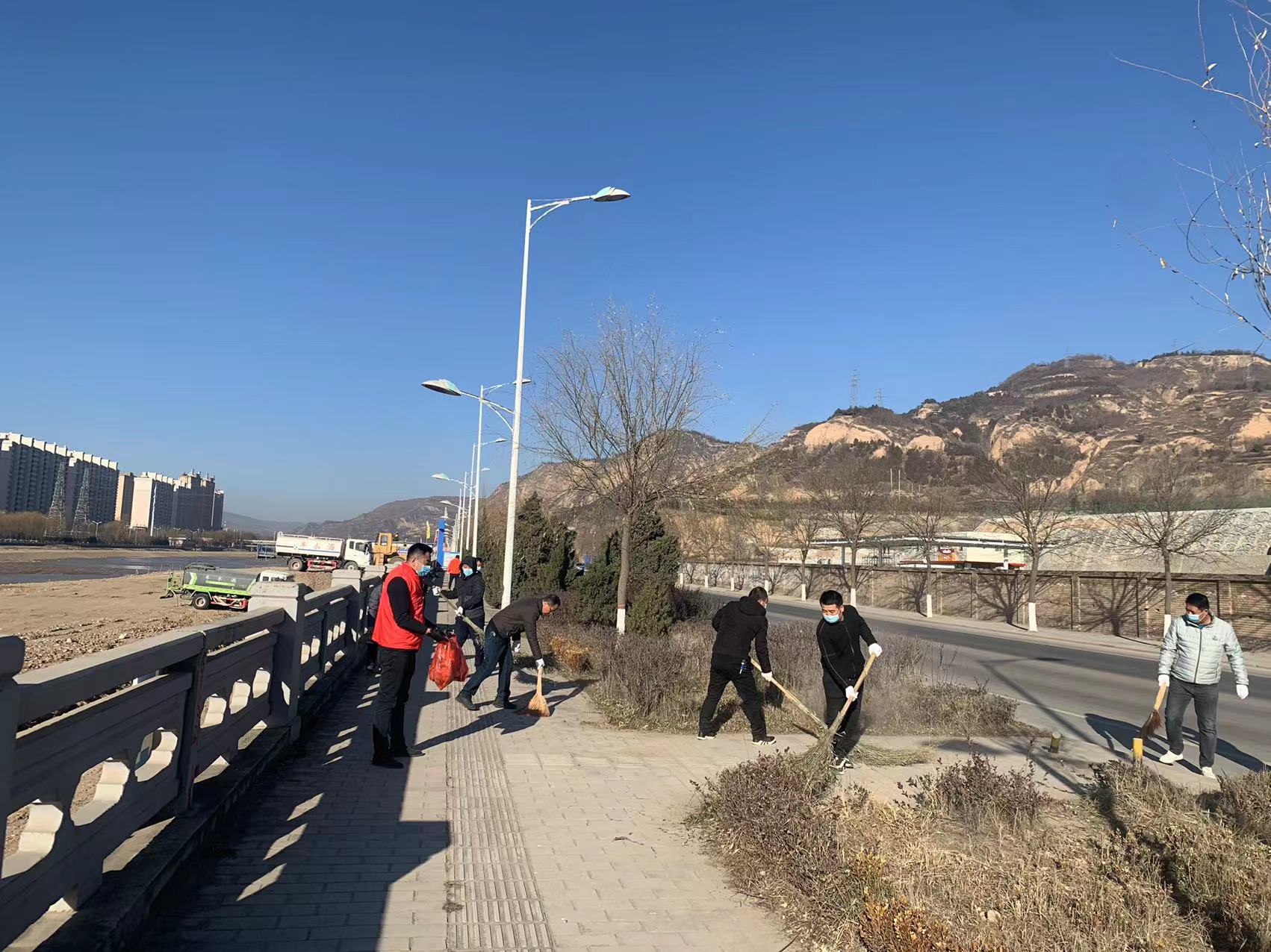 在第36個(gè)“國際志愿日”來臨之際,按照平?jīng)鍪袆?chuàng)建全國文明城市工作領(lǐng)導(dǎo)小組辦公室《關(guān)于舉辦“創(chuàng)城有我、志愿前行”志愿服務(wù)集中示范活動(dòng)的通知》要求,公司迅速行動(dòng)安排部署,12月5日,組織干部職工100余人參加志愿服務(wù)活動(dòng),認(rèn)真清潔打掃涇河北路火車站橋至廣成路大橋道路兩側(cè)環(huán)境衛(wèi)生。